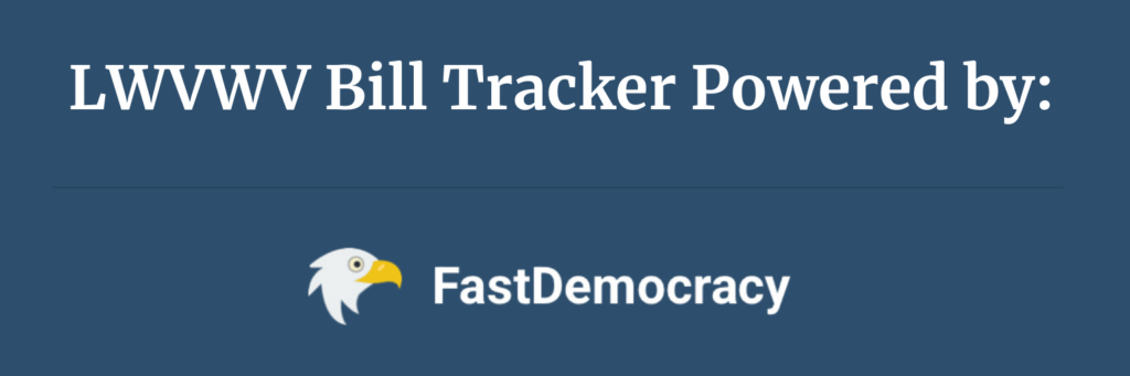 The League of Women Voters of West Virginia (LWVWV) has adopted four main areas as legislative priorities for the 2026 session of the West Virginia Legislature: Strengthening Democracy, Safeguarding Equal Rights, Protecting Children and Families, and Creating a Sustainable Future. Click on the categories below to see information on bills in each issue area. Subscribe to the bill list(s) to receive daily or weekly email updates, including action on bills and upcoming hearings.